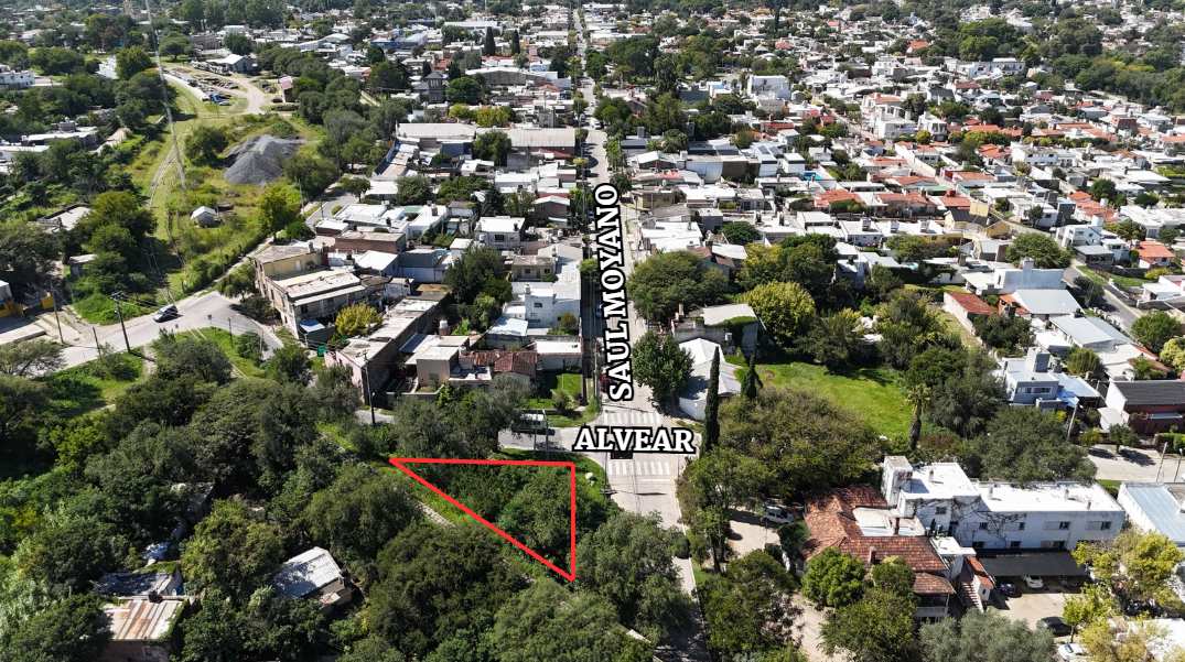 El terreno posee la escritura correspondiente. El lote posee una superficie de 271 metros cuadrados. Es triangular, sobre calle alvear 23 metros, sobre calle saul mollano 22 metros y el lado restante posee 32 metros.